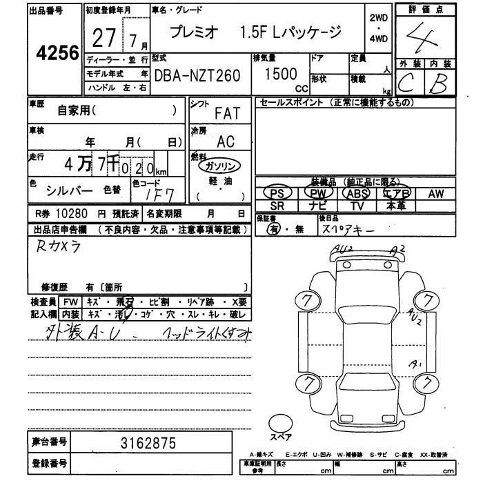 TOYOTA PREMIO - лот 4256