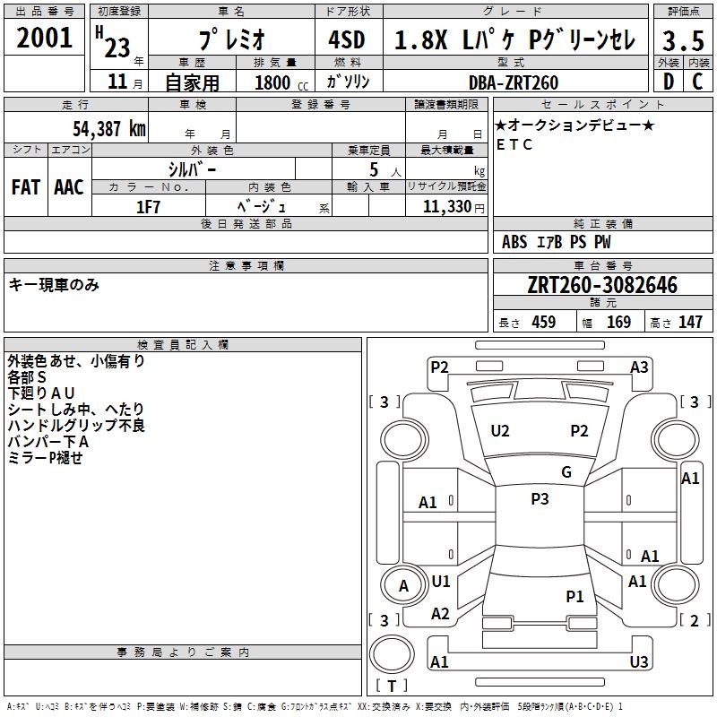 TOYOTA PREMIO - лот 2001