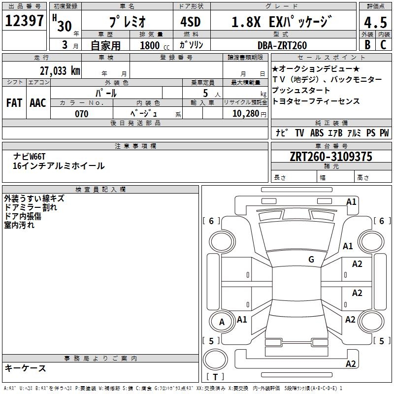 TOYOTA PREMIO - лот 12397