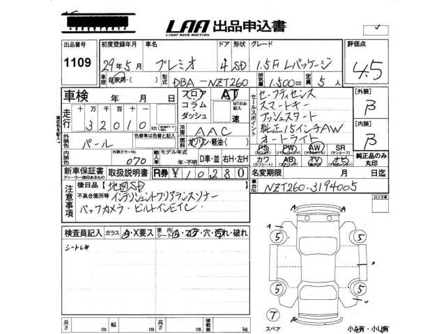 TOYOTA PREMIO - лот 1109