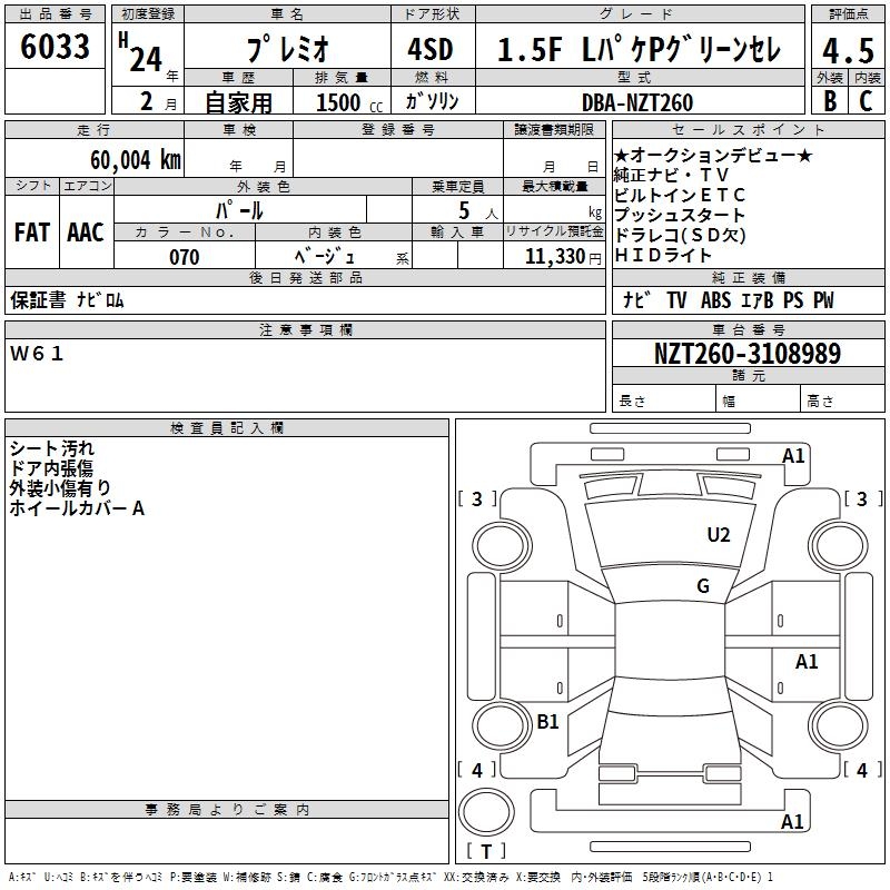 TOYOTA PREMIO - лот 6033