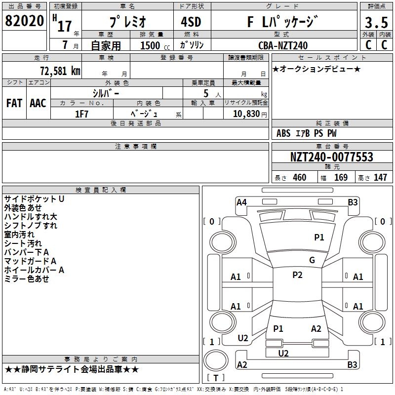 TOYOTA PREMIO - лот 82020