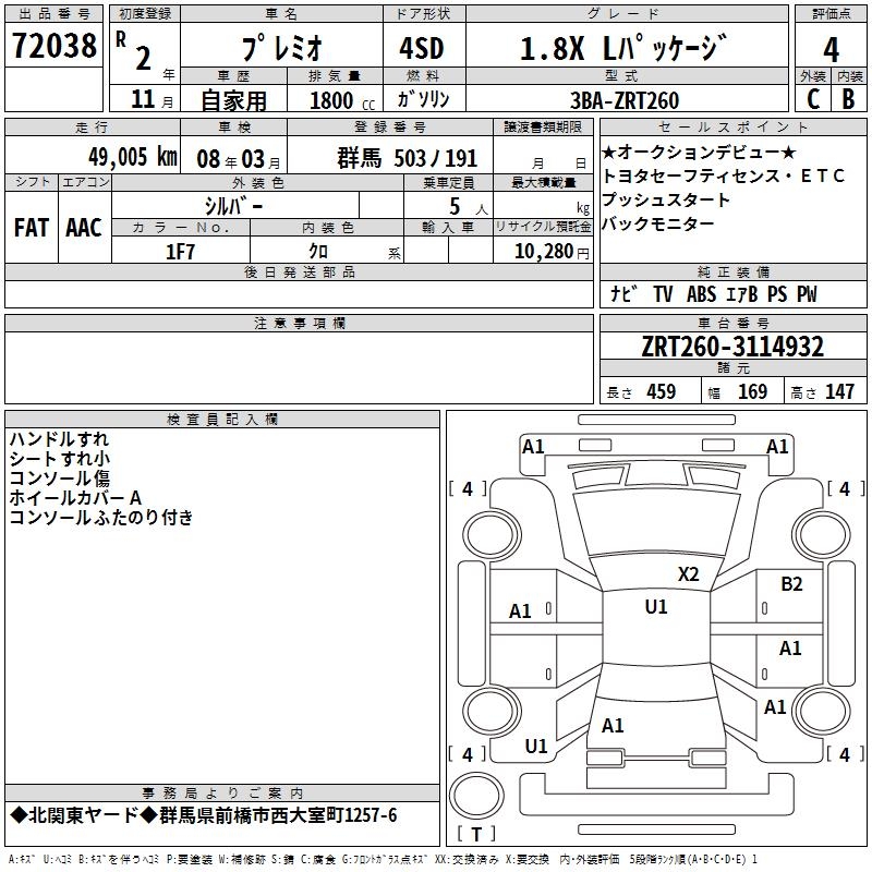 TOYOTA PREMIO - лот 72038