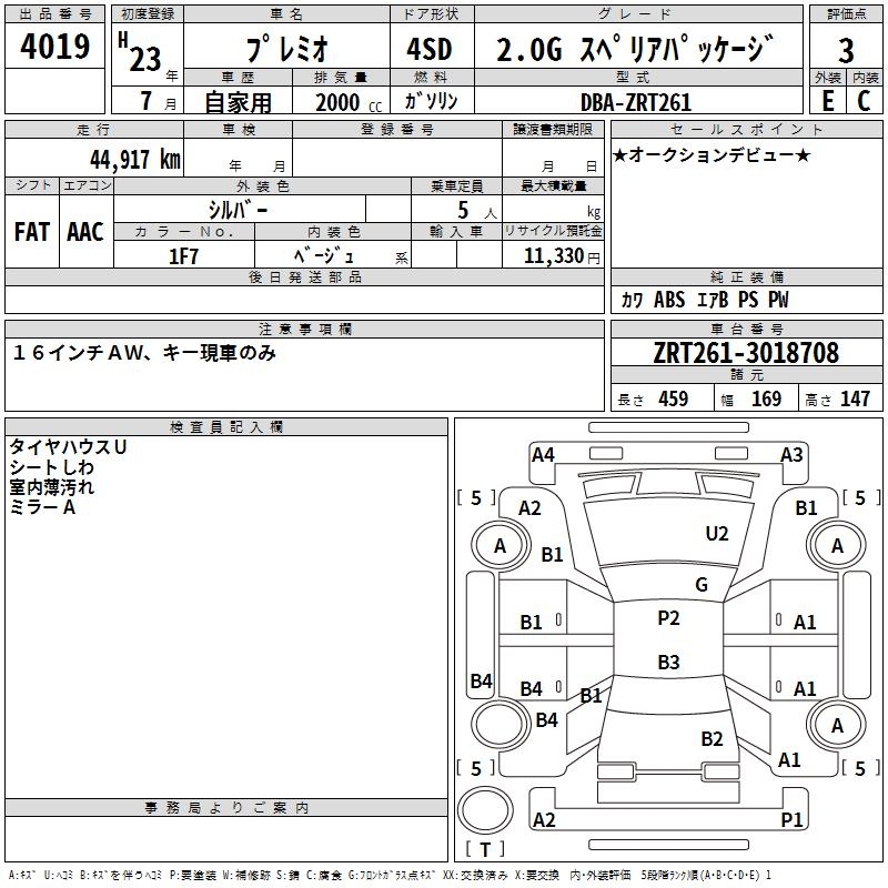 TOYOTA PREMIO - лот 4019