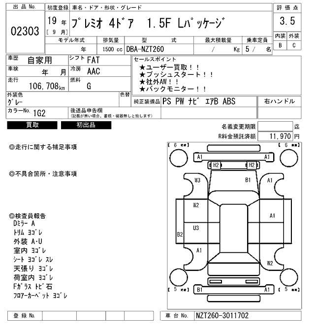 TOYOTA PREMIO - лот 2303