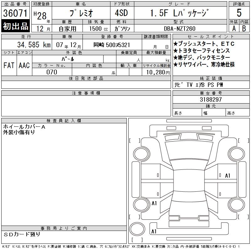 TOYOTA PREMIO - лот 36071