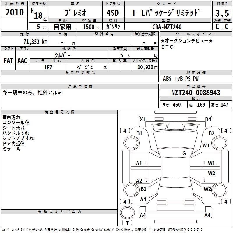 TOYOTA PREMIO - лот 2010