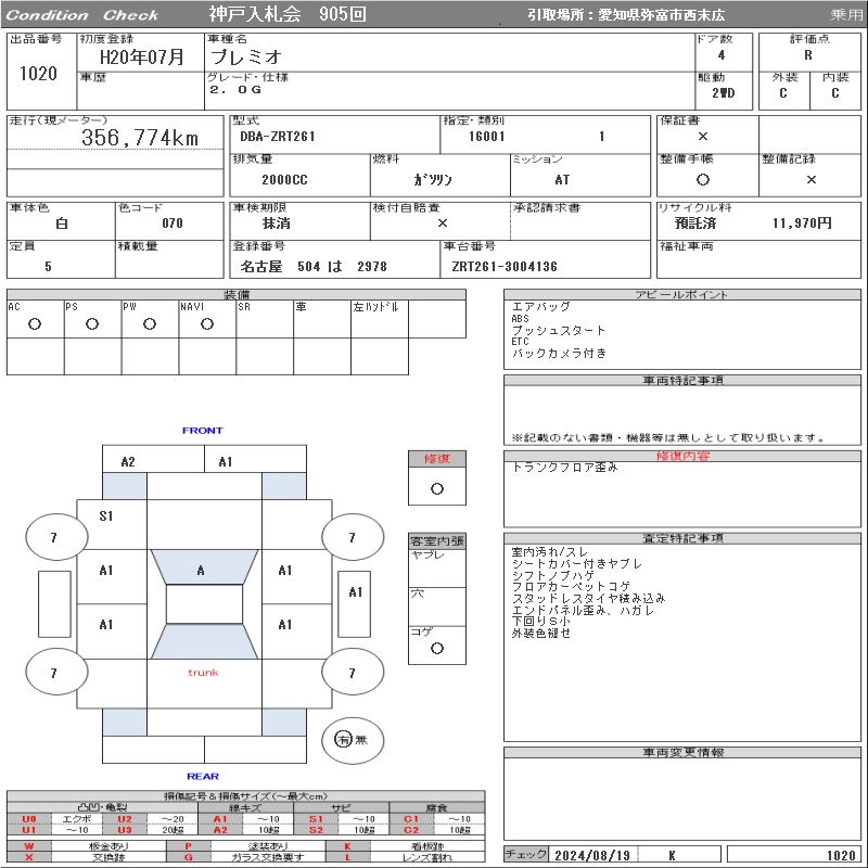 TOYOTA PREMIO - лот 1020
