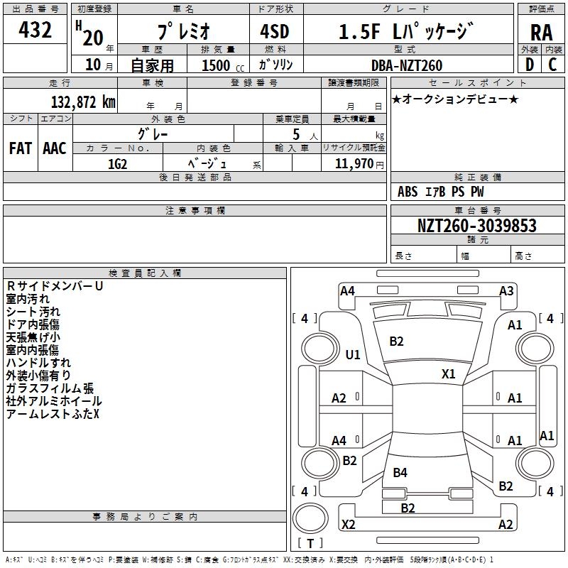 TOYOTA PREMIO - лот 432