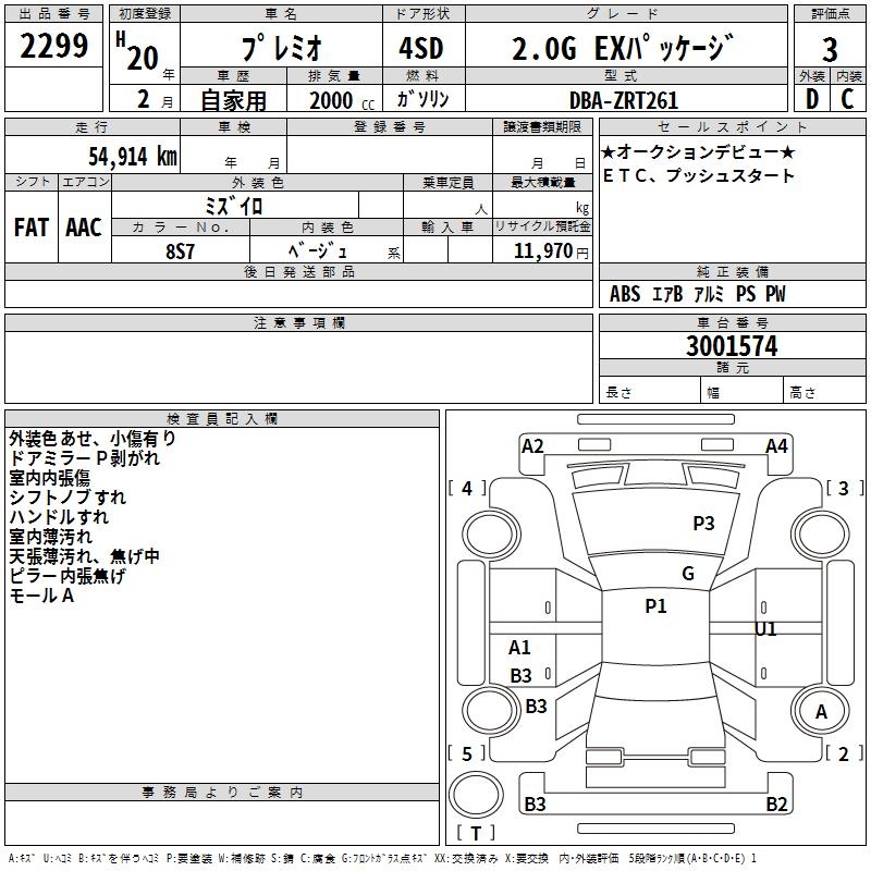 TOYOTA PREMIO - лот 2299