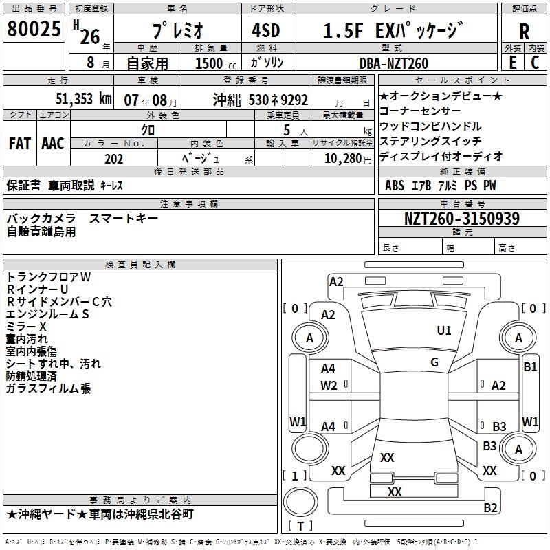 TOYOTA PREMIO - лот 80025