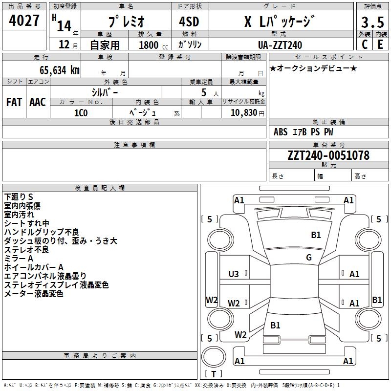 TOYOTA PREMIO - лот 4027