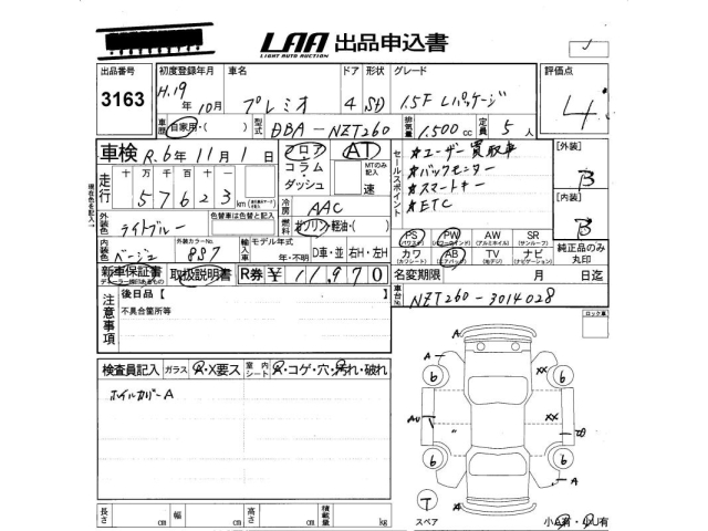 TOYOTA PREMIO - лот 3163