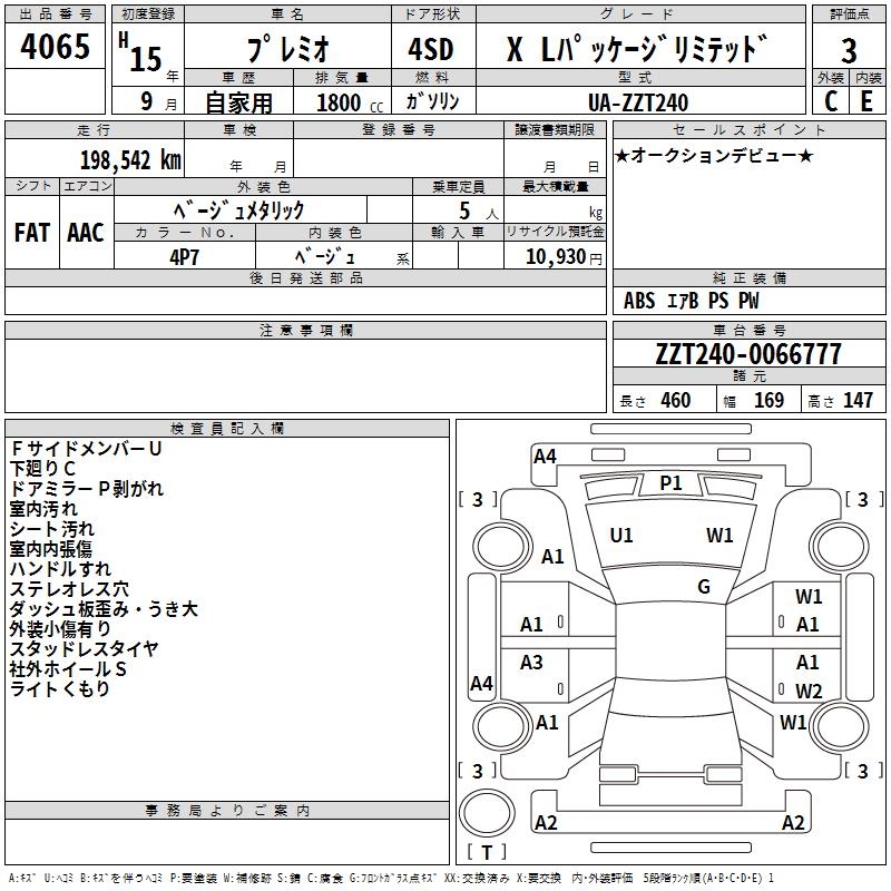 TOYOTA PREMIO X L package limited - лот 4065