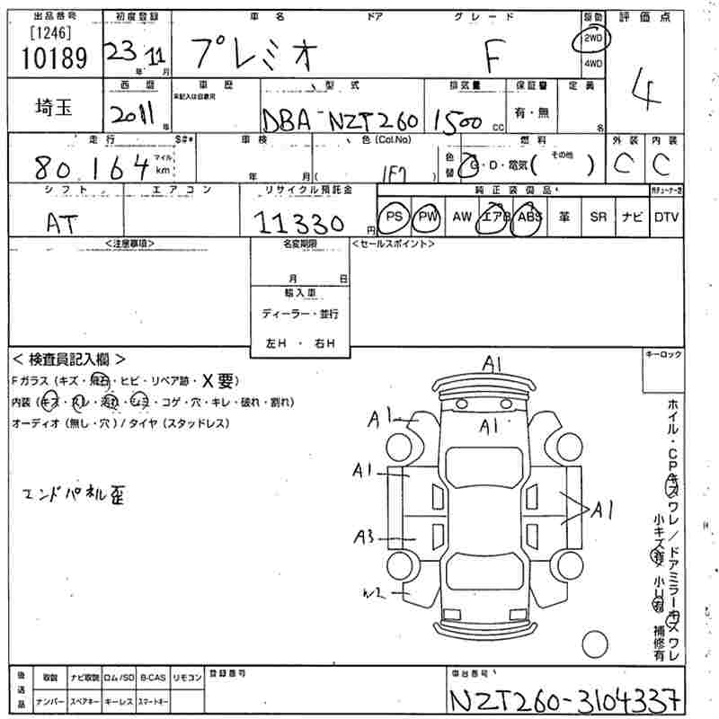 TOYOTA PREMIO - лот 10189