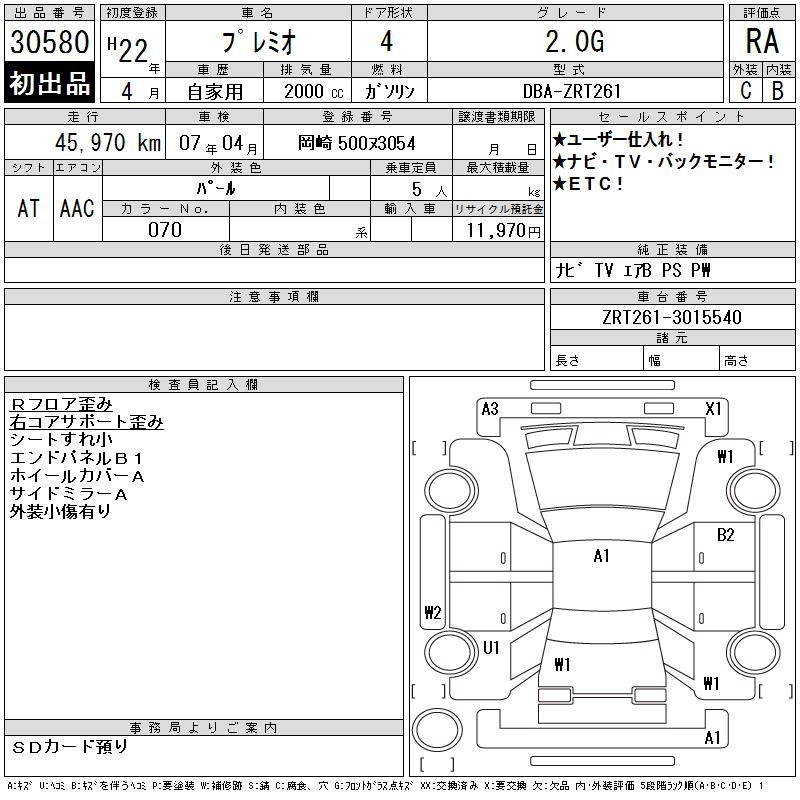 TOYOTA PREMIO - лот 30580
