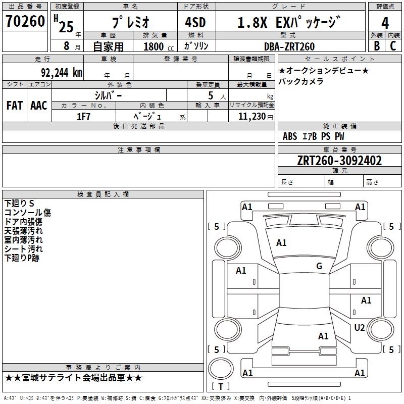TOYOTA PREMIO - лот 70260