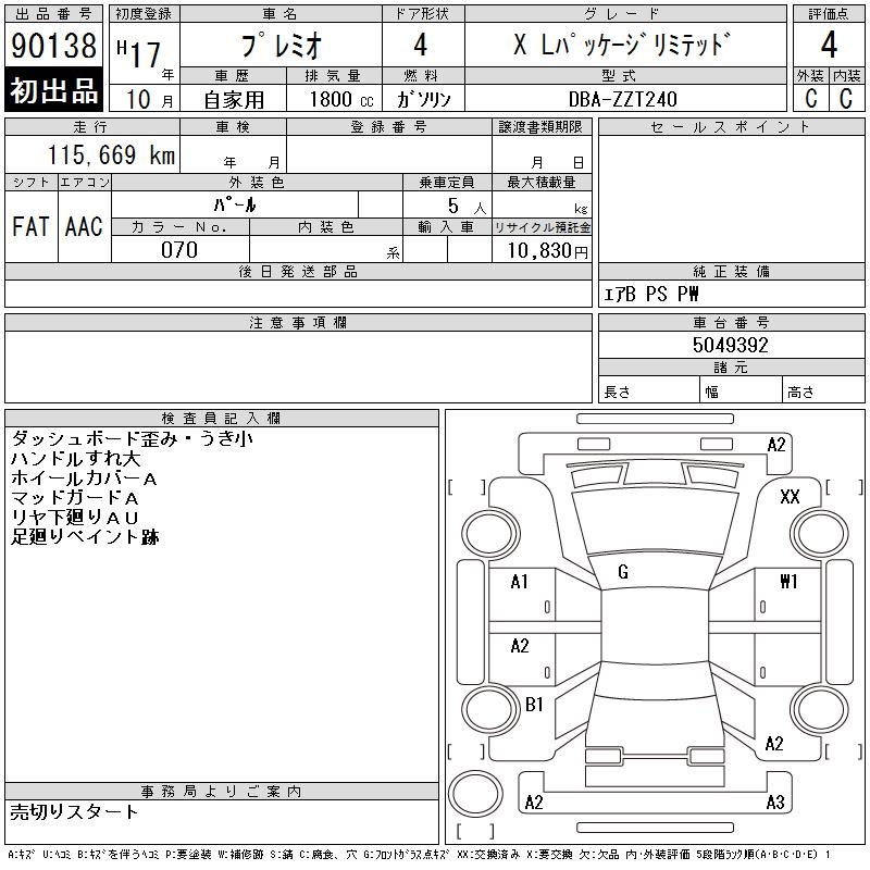 TOYOTA PREMIO - лот 90138