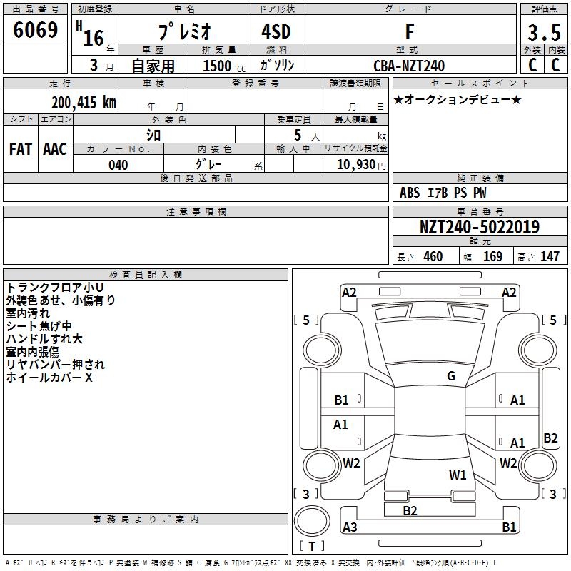TOYOTA PREMIO - лот 6069