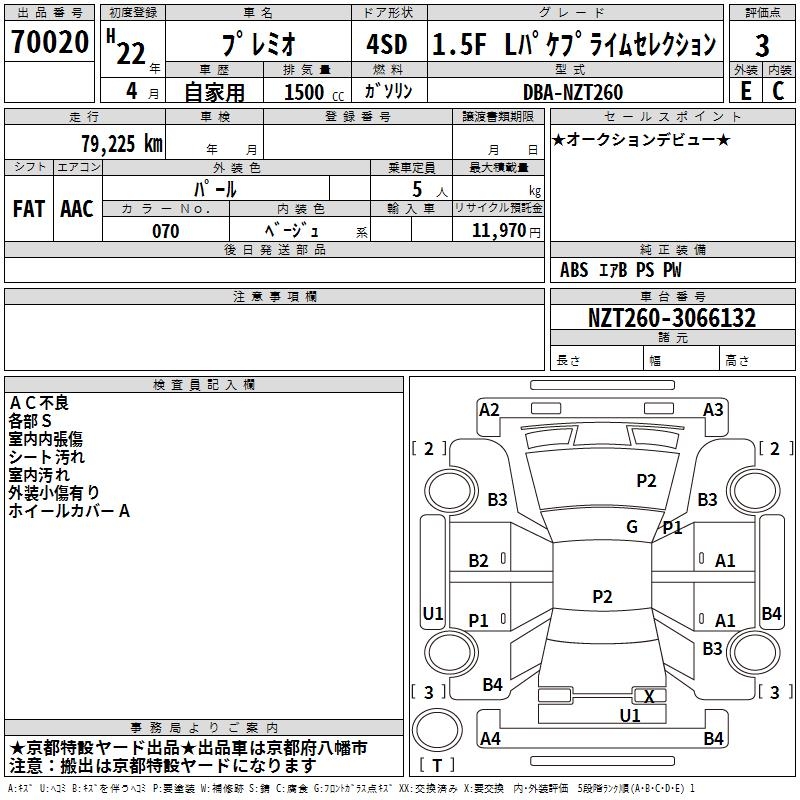 TOYOTA PREMIO - лот 70020