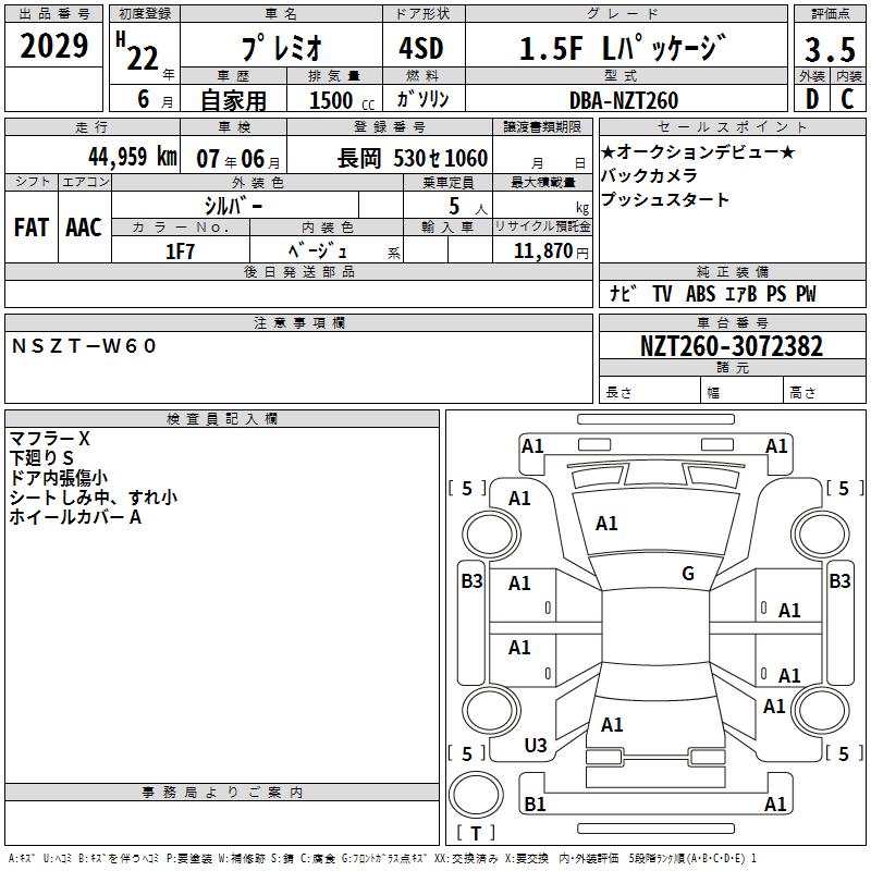 TOYOTA PREMIO - лот 2029