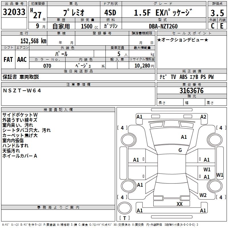 TOYOTA PREMIO - лот 32033