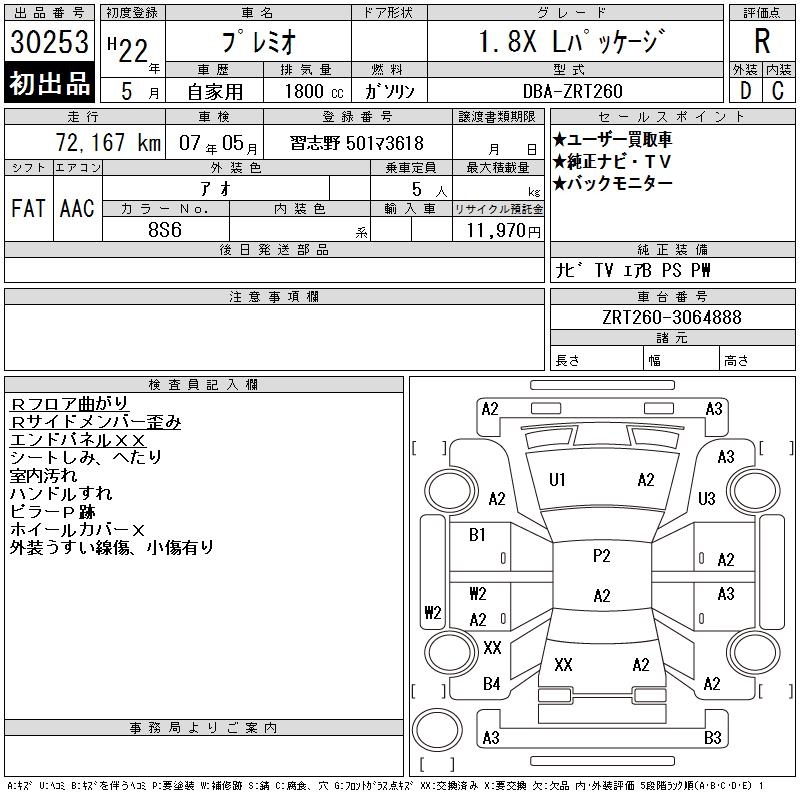 TOYOTA PREMIO - лот 30253