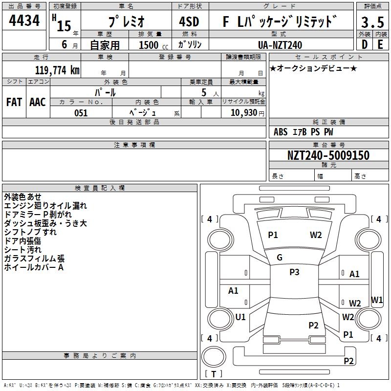 TOYOTA PREMIO - лот 4434