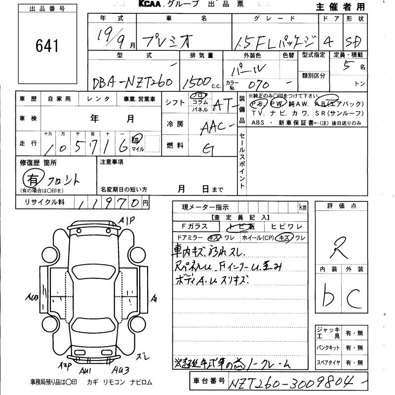 TOYOTA PREMIO - лот 641
