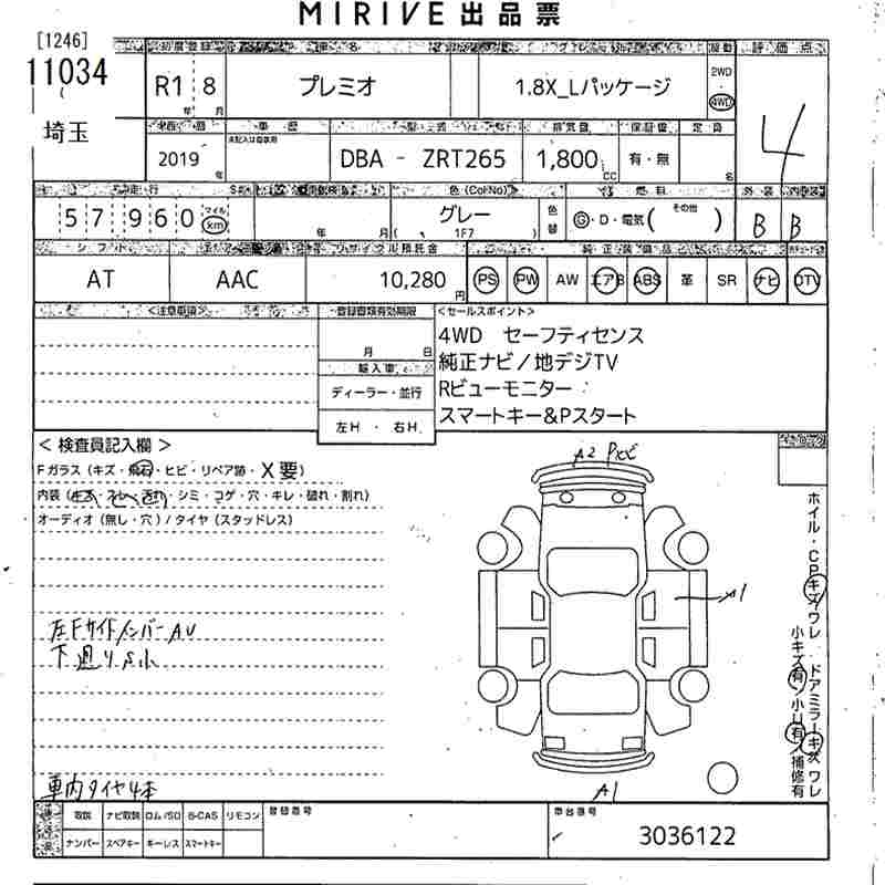 TOYOTA PREMIO - лот 11034