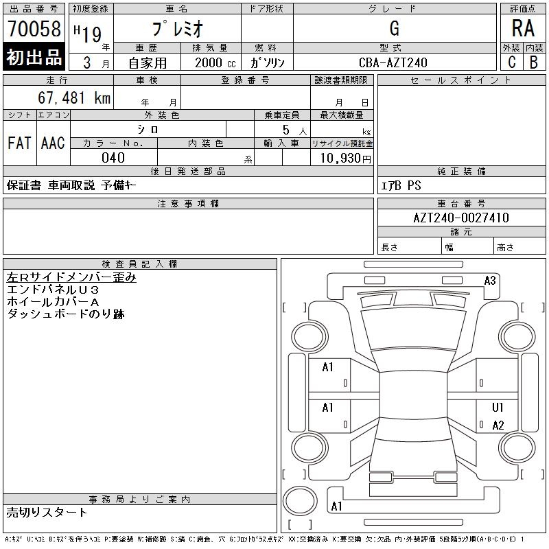 TOYOTA PREMIO - лот 70058