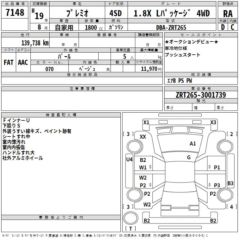 TOYOTA PREMIO - лот 7148