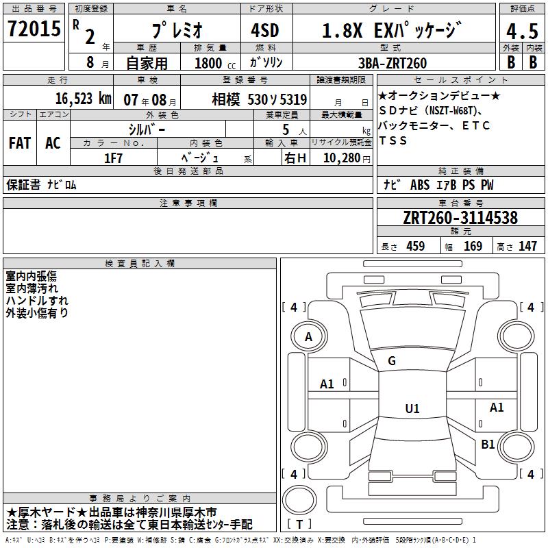 TOYOTA PREMIO - лот 72015