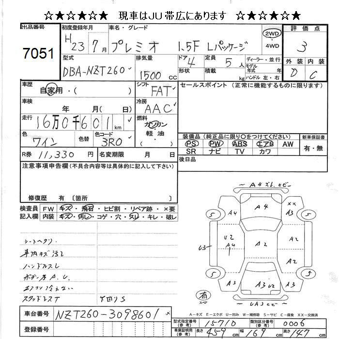 TOYOTA PREMIO - лот 7051