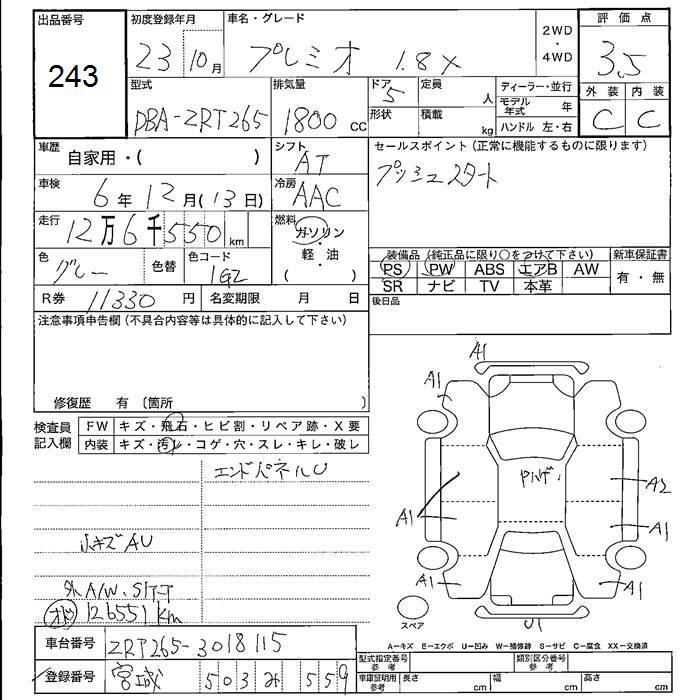 TOYOTA PREMIO - лот 243