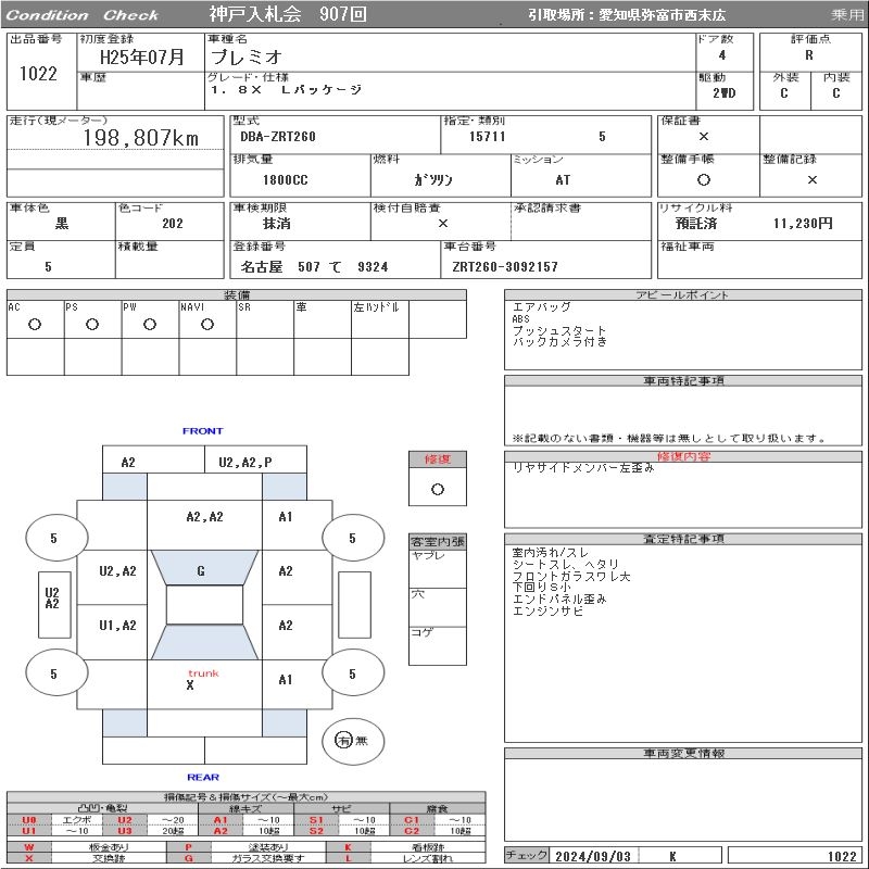 TOYOTA PREMIO - лот 1022