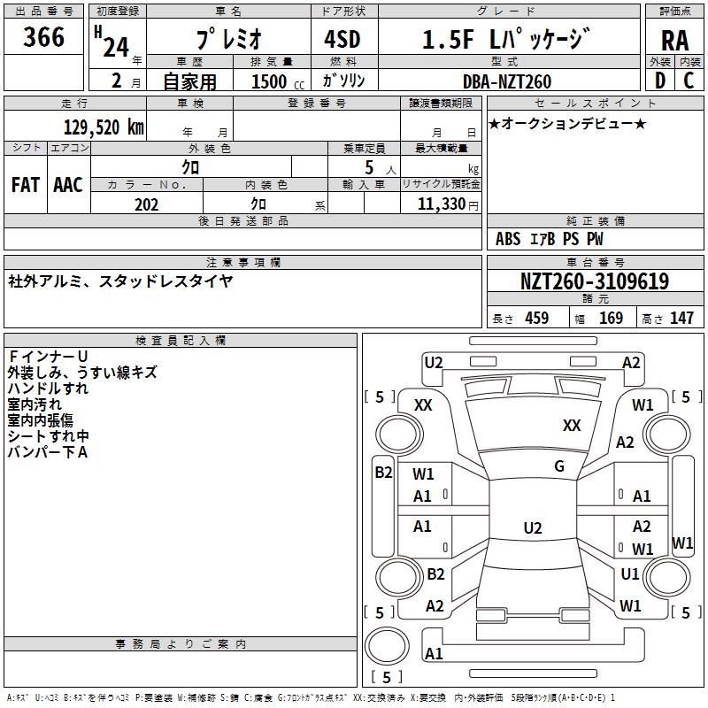 TOYOTA PREMIO - лот 366