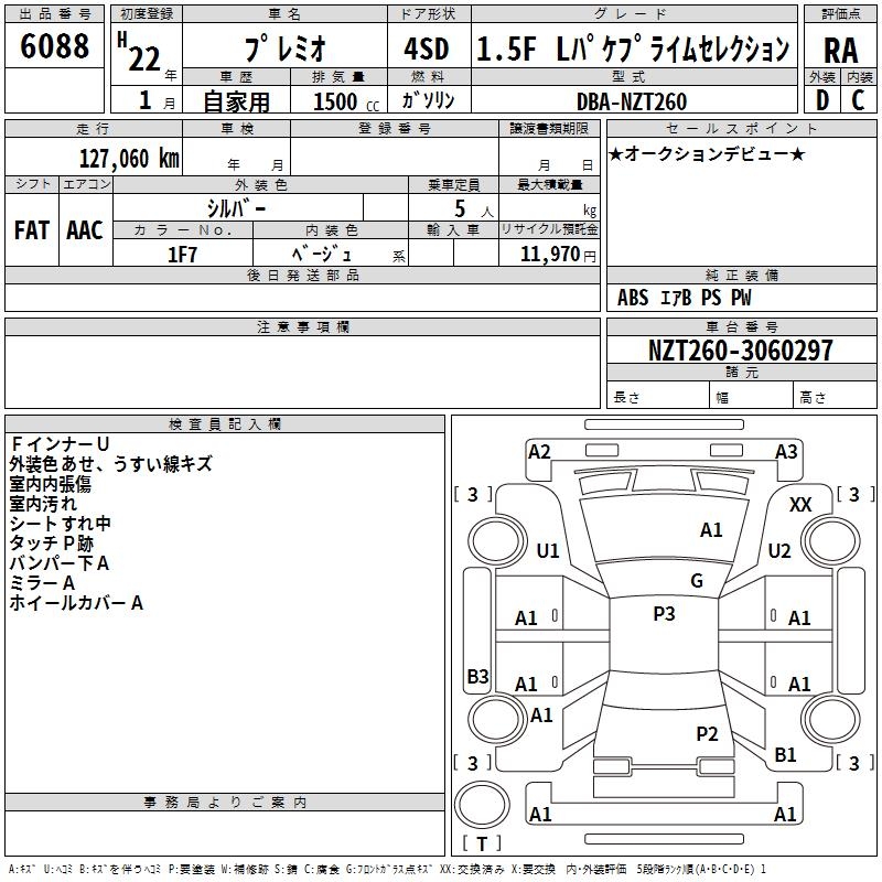 TOYOTA PREMIO - лот 6088