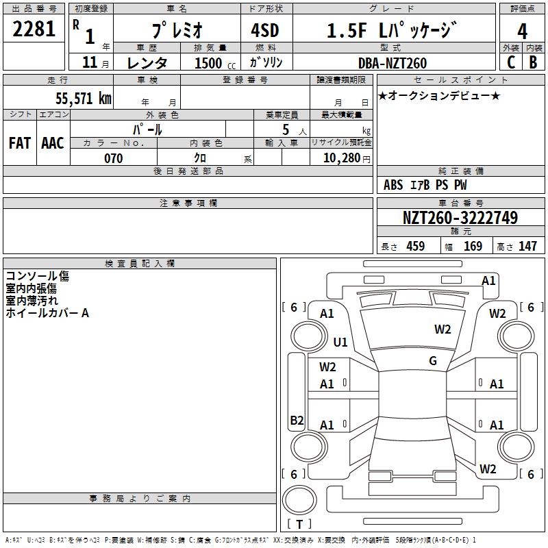 TOYOTA PREMIO - лот 2281