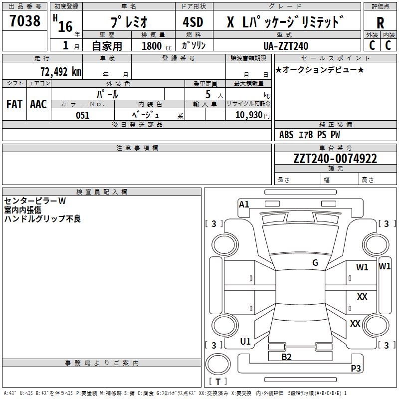TOYOTA PREMIO - лот 7038