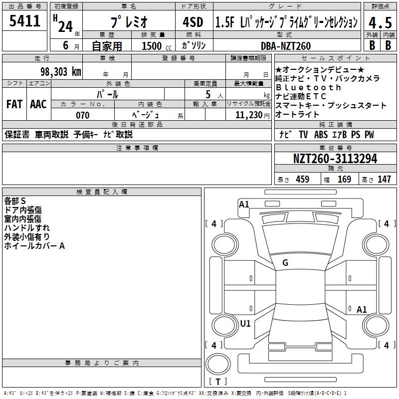 TOYOTA PREMIO - лот 5411