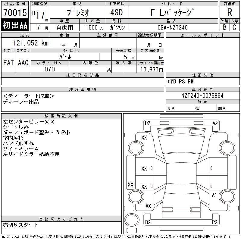 TOYOTA PREMIO - лот 70015