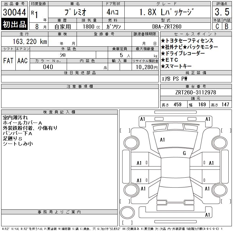 TOYOTA PREMIO - лот 30044