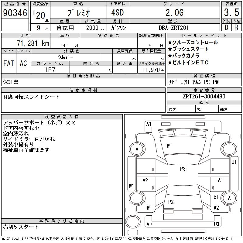 TOYOTA PREMIO - лот 90346