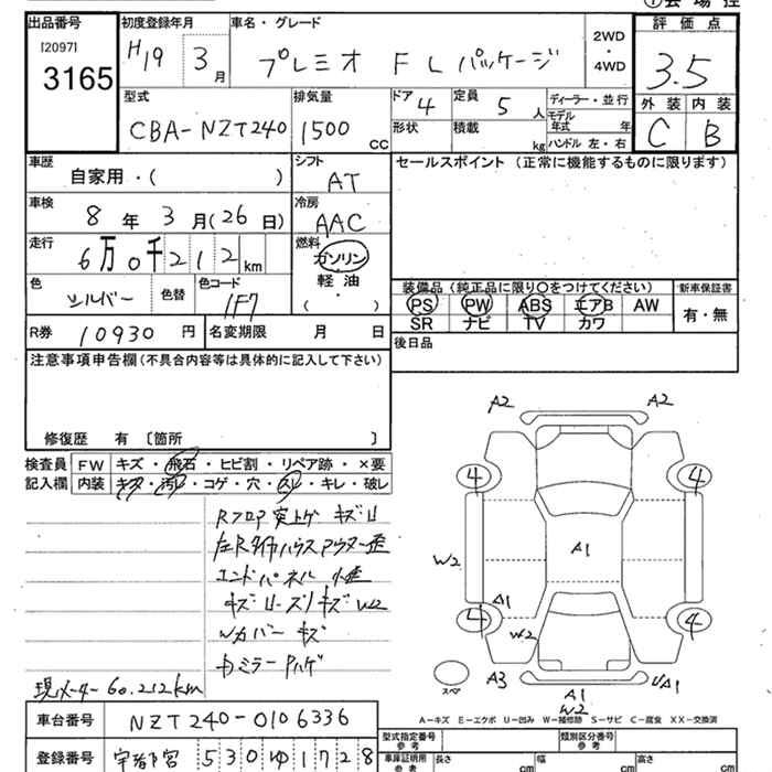 TOYOTA PREMIO - лот 3165