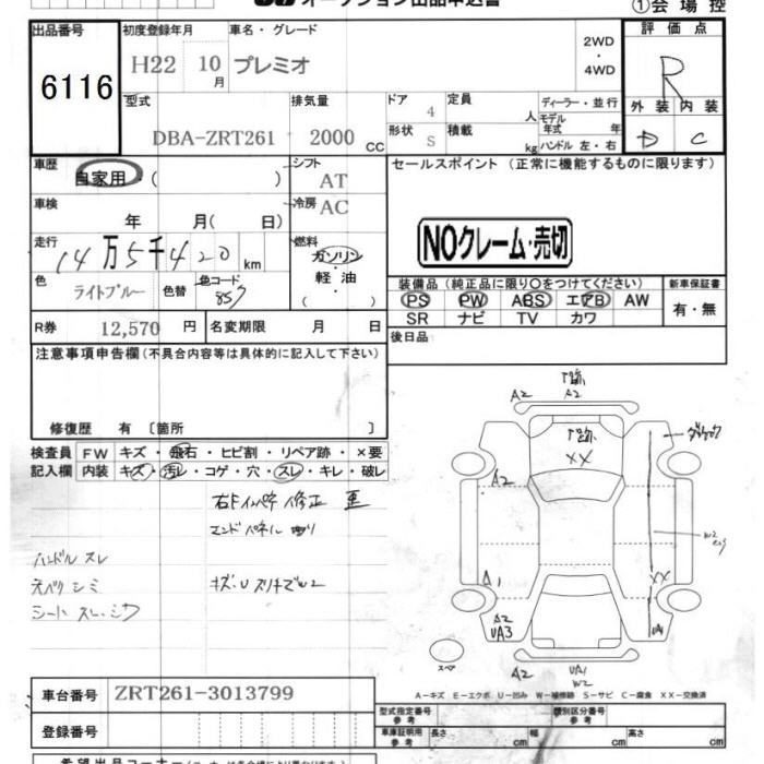 TOYOTA PREMIO - лот 6116
