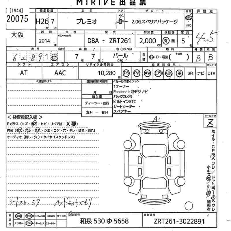 TOYOTA PREMIO - лот 20075