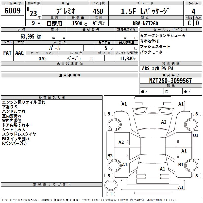 TOYOTA PREMIO - лот 6009