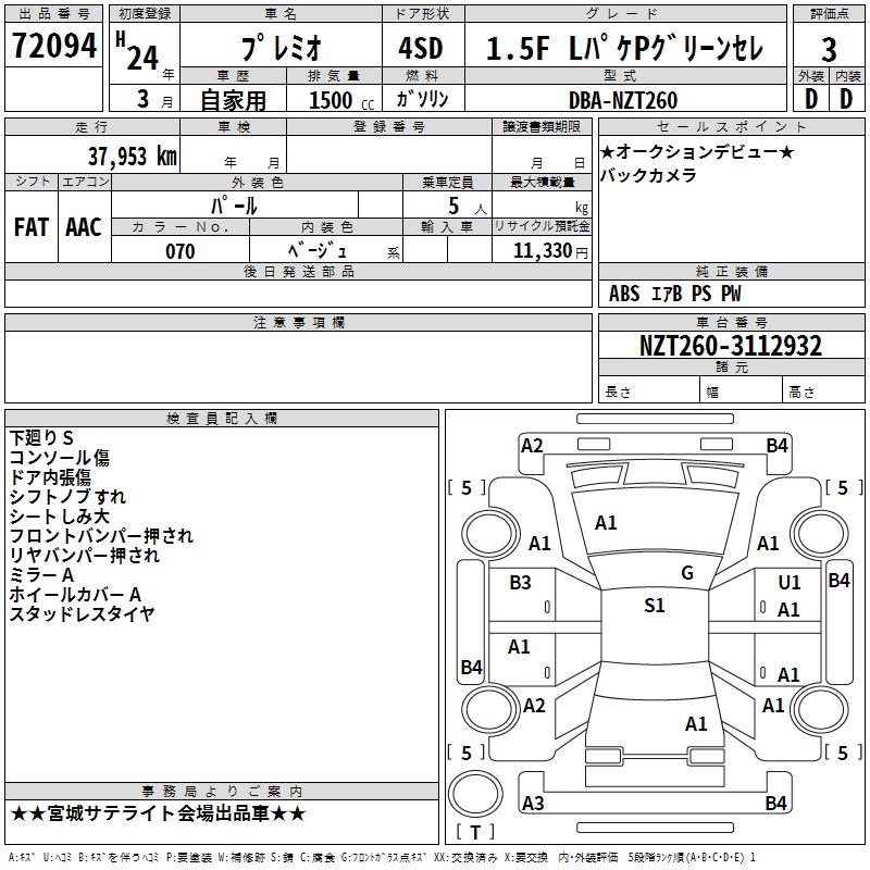 TOYOTA PREMIO - лот 72094