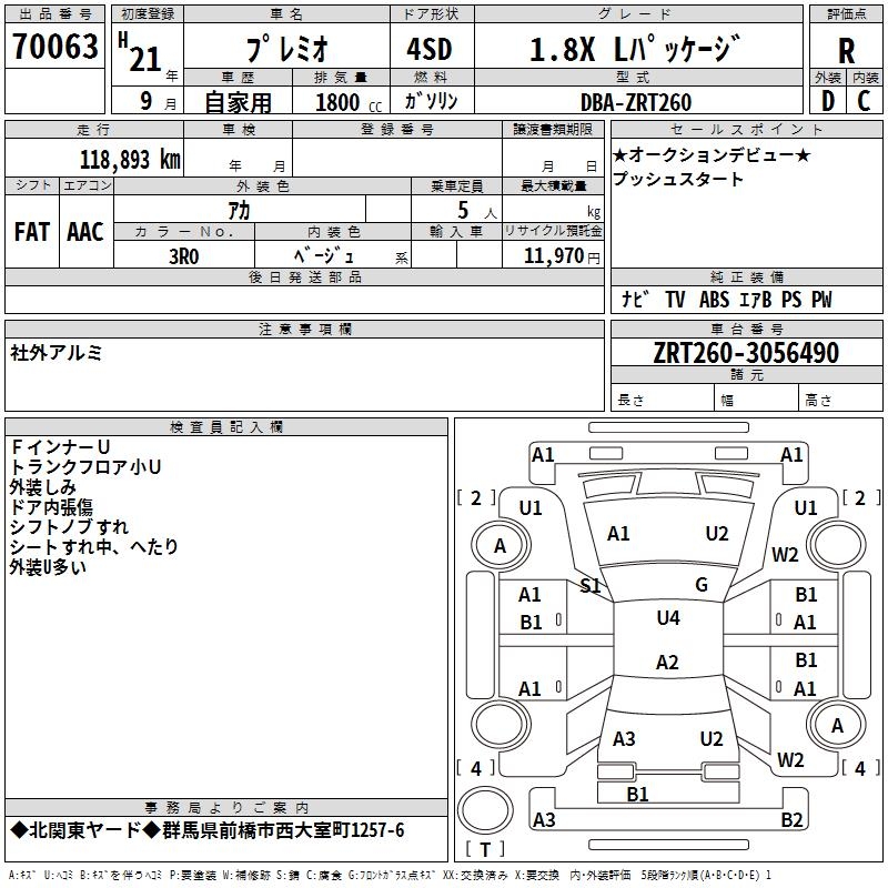 TOYOTA PREMIO - лот 70063